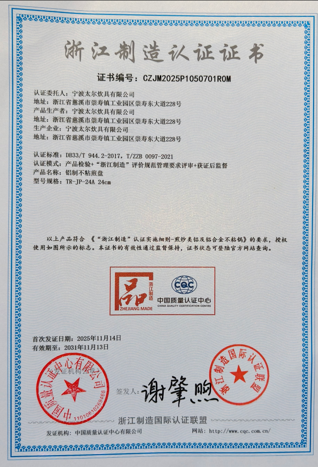 浙江制造认证证书